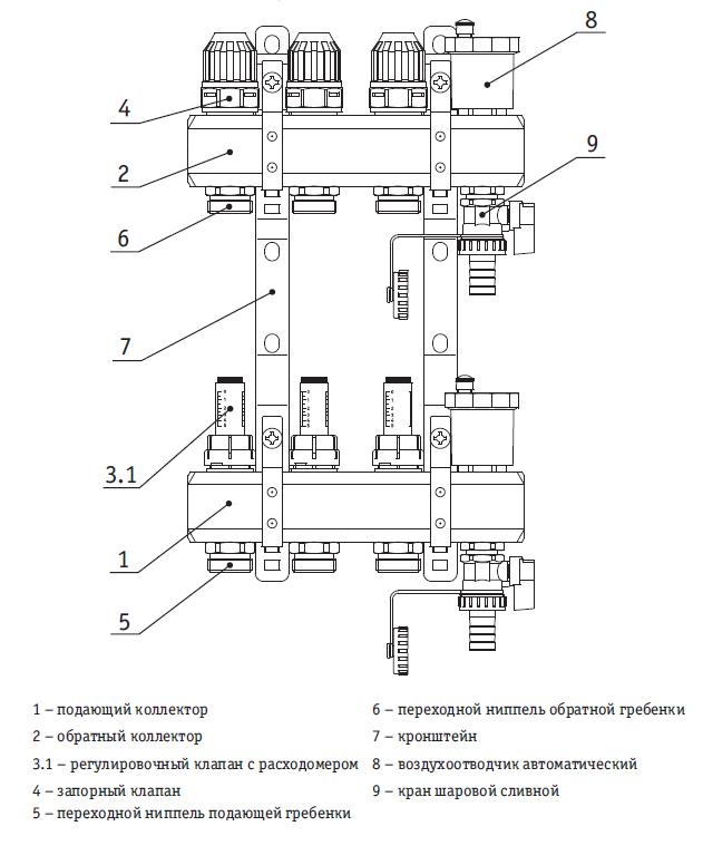 • Максимально допустимый напор на отводах обратного коллектора - 1,6 м3/час