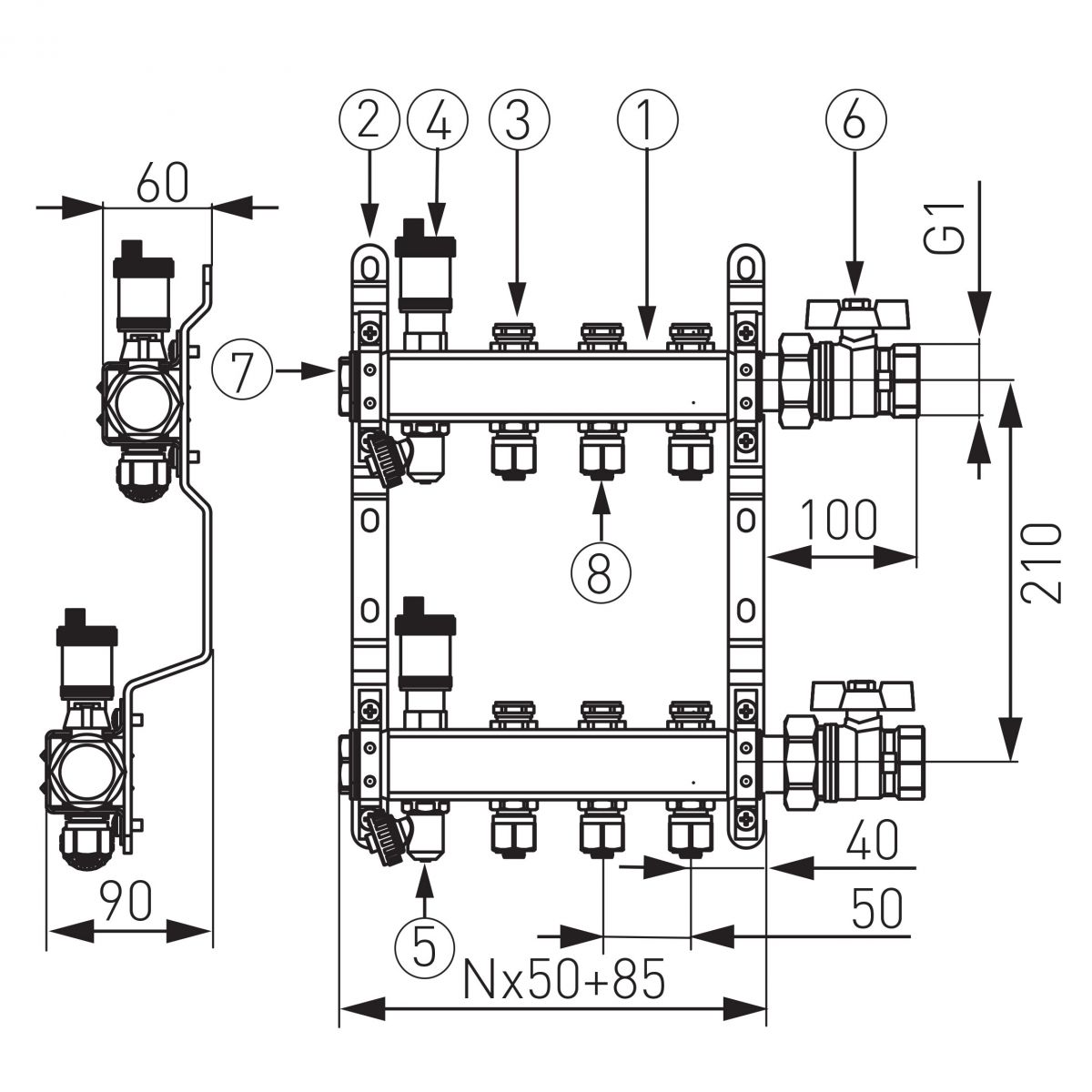• распределительная шина с 2 - 12 цепями - 1 "подключение, 2 шт. (1)