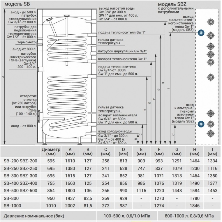 • Бак из стали и защищен от коррозии путем нанесения эмалированного покрытия.