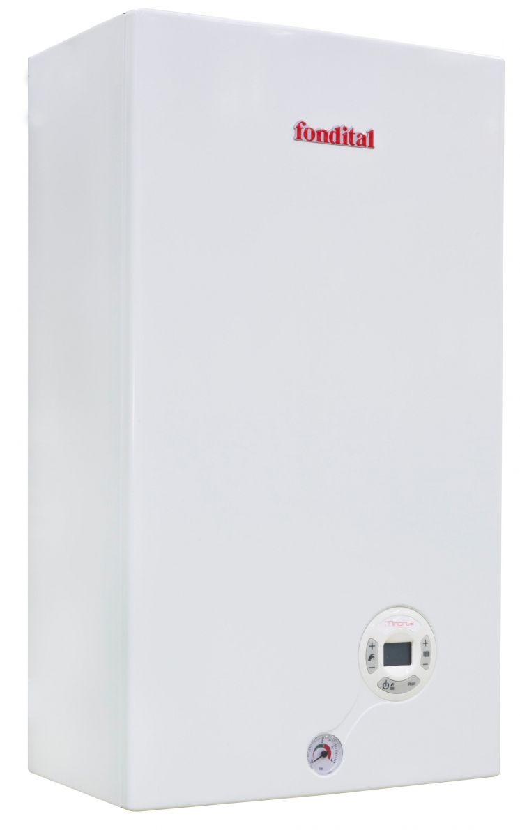 Модель настенного котла FONDITAL (Фондитал) Minorca CU CTFS 24 kW работает от природного газа и отличается компактными размерами. Оборудование удобно монтируется и функционирует практически бесшумно. Агрегат прост в управлении, все настройки режимов функционирования прибора регулируются пользователем с помощью ЖК-дисплея на передней части корпуса.