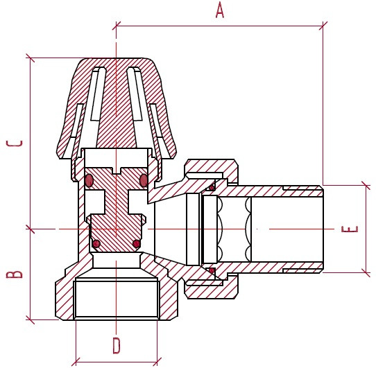 Ручной угловой вентиль предназначен для регулировки теплового режима отопительного прибора путем изменения количества теплоносителя от нуля до величины, которая определена данным настроечным вентилем.