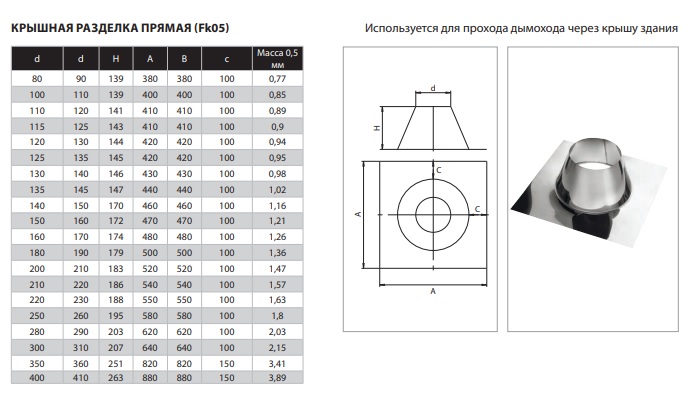 Крышная разделка прямая FERRUM Ø 200 (430/0,5 mm) Одностенные дымоходы - это самое простое решение при сборке дымового канала, не требующее больших расходов. Дымоходная конструкция имеет стандартный набор различных элементов, при помощи которых можно собрать дымоотводящий канал практически любой сложности. Все элементы стыкуются между собой по раструбной системе соединения. Они могут использоваться при монтаже дымоходов в кирпичных каналах уже вошедших в эксплуатацию жилых зданий либо при монтаже каналов вентиляции. Одностенные дымоходы следует размещать только внутри отапливаемых помещений, при наружном размещении дымоходы следует теплоизолировать.