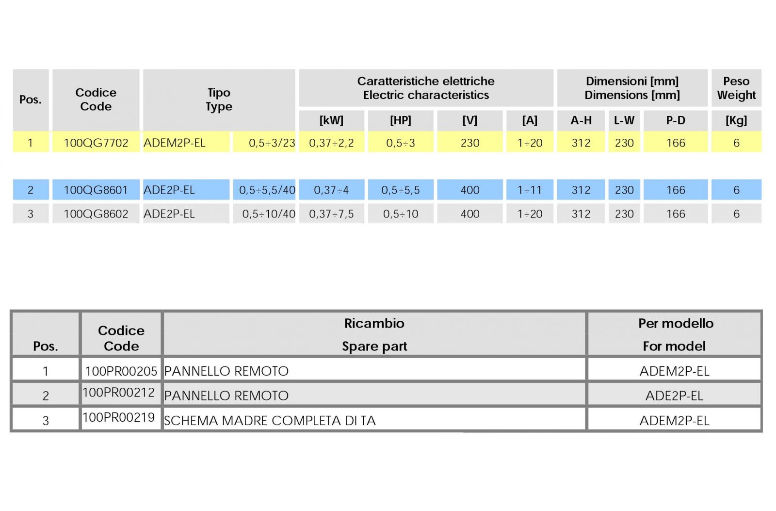 • Напряжение питания 400 В +- 10 % (для ADE2P-EL )