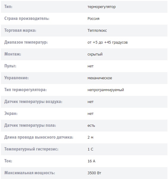 Механический терморегулятор Теплолюкс LC 001 поддерживает комфортную температуру обогреваемой поверхности и обеспечивает рациональный расход электроэнергии. Эргономичный дизайн корпуса и удобный дисковый регулятор температуры с функцией выключателя делают процесс управления комфортом легким и приятным.