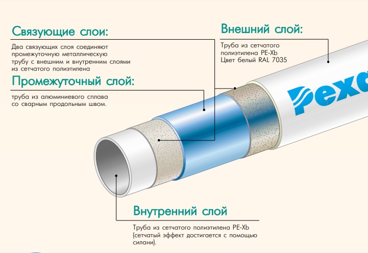 Металлопластиковая труба VALSIR PEXAL, D 16x2 mm Комплекс PEXAL для систем водоснабжения и отопления основан на применении многослойных металлополимерных труб в комплекте с фитингами, изготовленными из специального латунного сплава. Плоская тефлоновая прокладка изолирует трубу от фитинга. Эта прокладка полностью исключает прямой контакт двух металлов, предупреждая возникновение электрохимической коррозии.