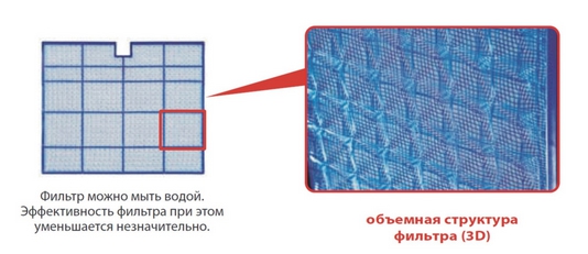Чистота нагнетаемого воздуха обеспечивается применением наноплатинового фильтра, который удаляет из воздуха вирусы и бактерии, а также успешно справляется с неприятными запахами. Фильтр можно промывать водой. Комфортное кондиционирование достигается благодаря применению сложной системы заслонок, которая обеспечивает оптимальную форму потока воздуха и его скорость. Также предусмотрен режим качания заслонок в горизонтальной плоскости. Внутренний блок можно легко разобрать для очистки, при этом не нужно использовать инструменты.