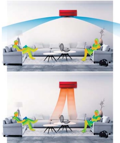 Кондиционер умеет определять местоположение людей в помещении и автоматически отклонять или наводить воздушный поток на пользователя. Автоматическое отклонение воздушного потока от пользователя может быть полезно в режиме охлаждения, когда прямой поток кажется слишком сильным или холодным. Направление воздушного потока непосредственно на пользователя необходимо для быстрого создания комфортной зоны. Например, в режиме нагрева, когда большая часть помещения еще не прогрелась.