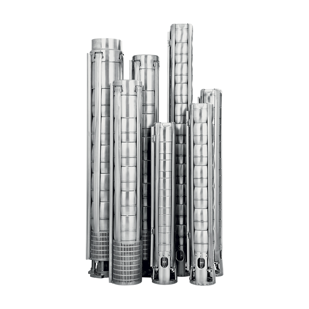 6”, 7", 8” и 10” дюймовые погружные скважинные насосы из нержавеющей стали AISI 304 (AISI 316 по запросу). Отличаются особо высокой стойкостью к коррозии. Предназначены для систем водоснабжения.