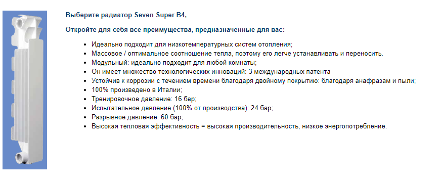 Другие особенности / преимущества Радиатор Seven B4: