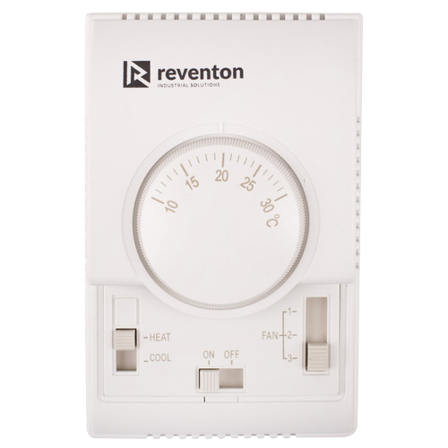 Предназначен для контролирования температуры нагрева и охлаждения, с различными вариантами подключения и режимами работы. Рекомендуем использовать с тепловентиляторами Reventon 3-х скоростными двигателями.