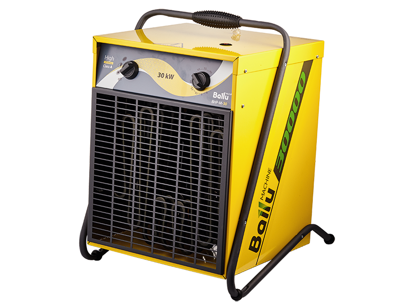 Тепловая электрическая пушка Ballu BHP-M-30 предназначена для общего обогрева строящихся, ремонтируемых объектов и помещений площадью до 300 м² При мощности потребления 30 кВт повышение температуры воздуха составляет до 36 °C. Имеет 3 режима работы: полная мощность нагрева, 1/2 мощность нагрева, а также режим вентиляции.