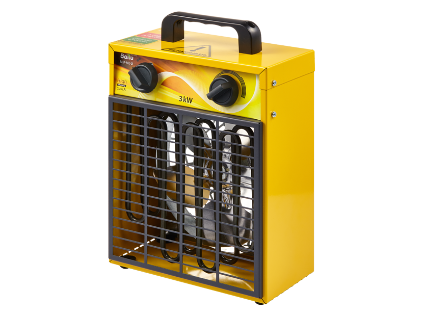 ЭНадежная и эффективная, профессиональная тепловая электрическая пушка Ballu BHP-M-3 оптимальна для общего обогрева строящихся, ремонтируемых объектов и помещений площадью до 35 м² При мощности потребления 3 кВт повышение температуры воздуха составляет до 30 °C. Имеет 3 режима работы: полная мощность нагрева, 1/2 мощность нагрева, а также режим вентиляции.