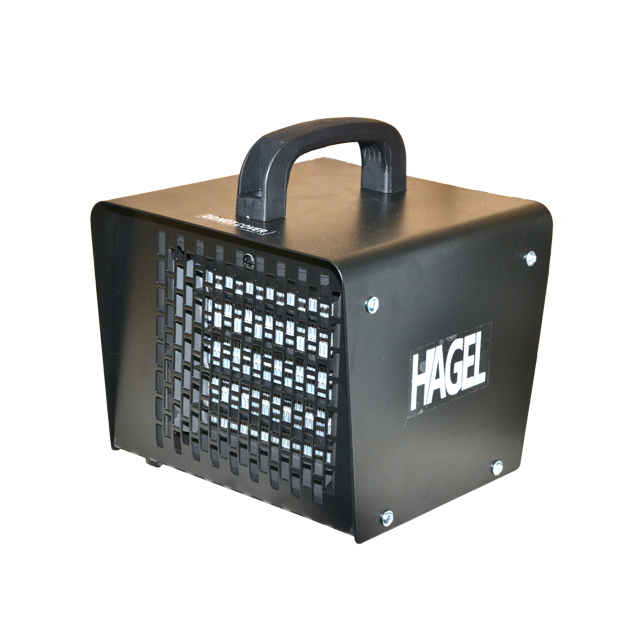 Тепловентилятор электрический бренда HAGEL модель IFH02A-20, c мощностью 2 кВт, расход воздуха 165 м3/ч, напряжение 220В и с площадью обогрева 20 м2.