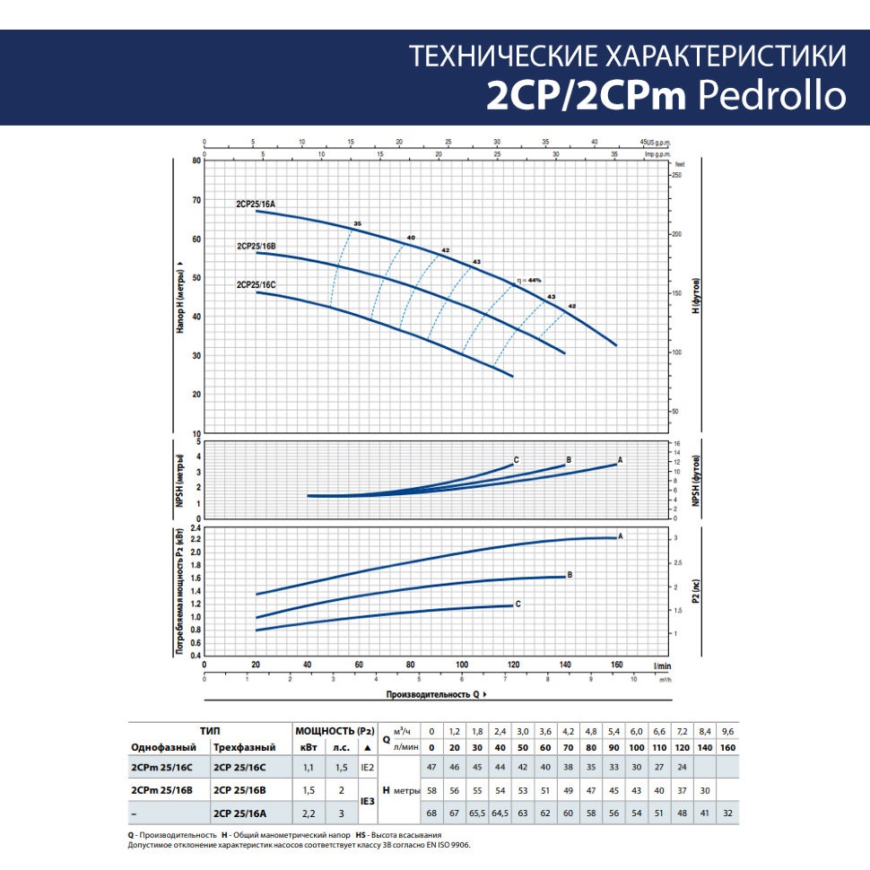 Центробежный трехфазный электронасос Pedrollo 2CP25/16A M - рекомендуются для перекачивания чистой воды и жидкостей, химически неагрессивных по отношению к конструкционным материалам насоса. Высокие эксплуатационные данные и адаптивность насосов делают их идеальным выбором для применения в бытовом секторе, коммунальном секторе и в промышленности, в частности, для автоматической подачи воды в комплекте с гидроаккумуляторами, повышения давления в водопроводной сети, использования в противопожарных установках. Установка насоса должна производиться в закрытых помещениях или в местах, защищенных от непогоды.