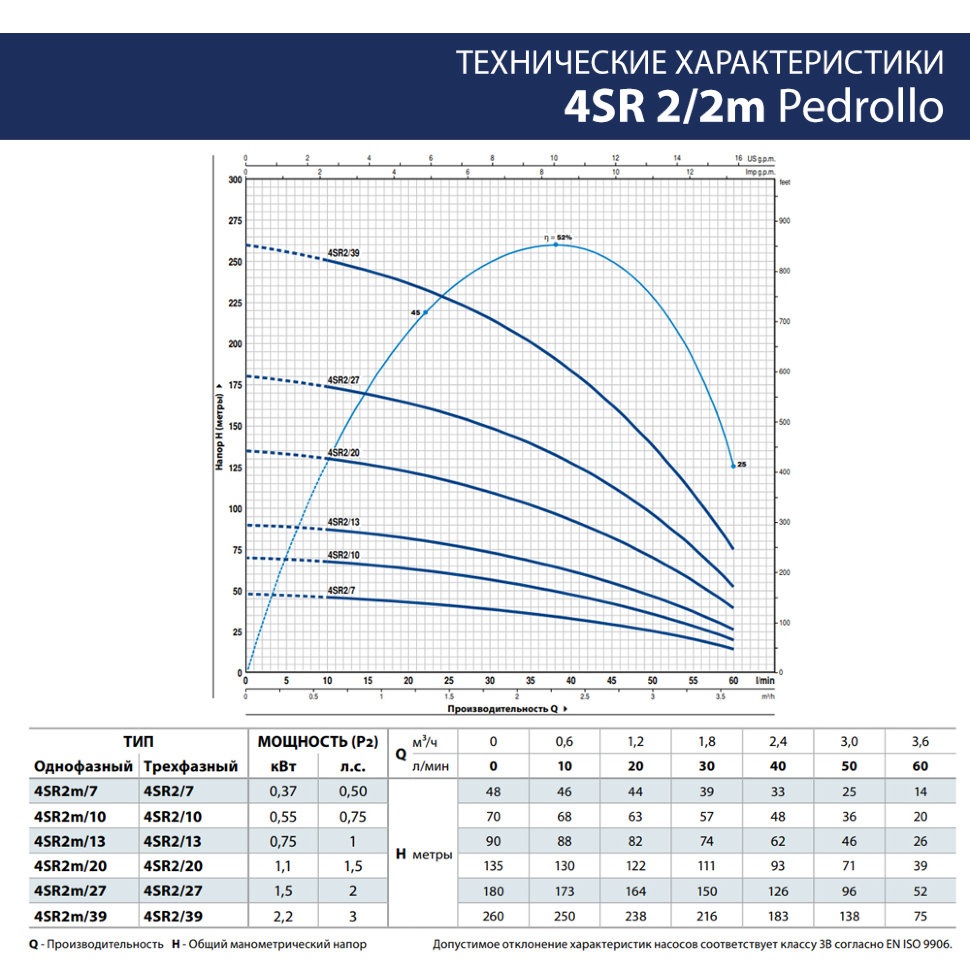 Высоты напора (max) 124 м