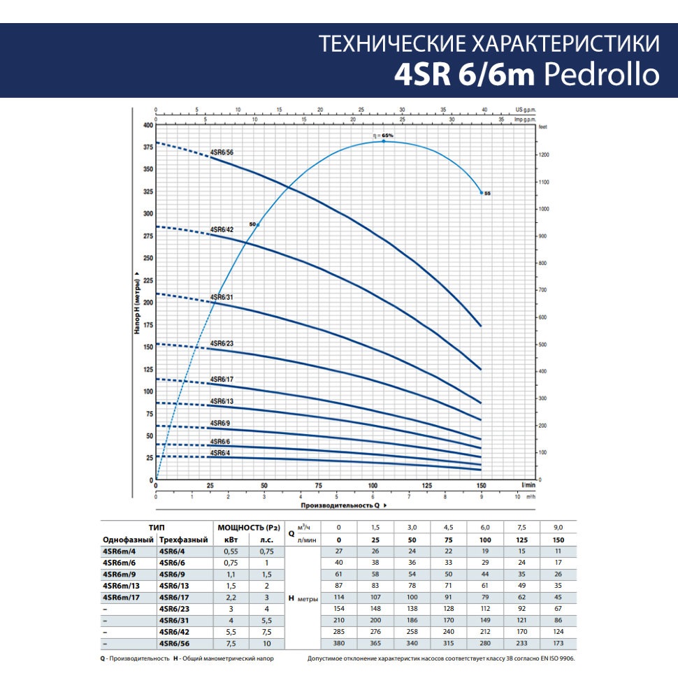 Высоты напора (max) 106 м