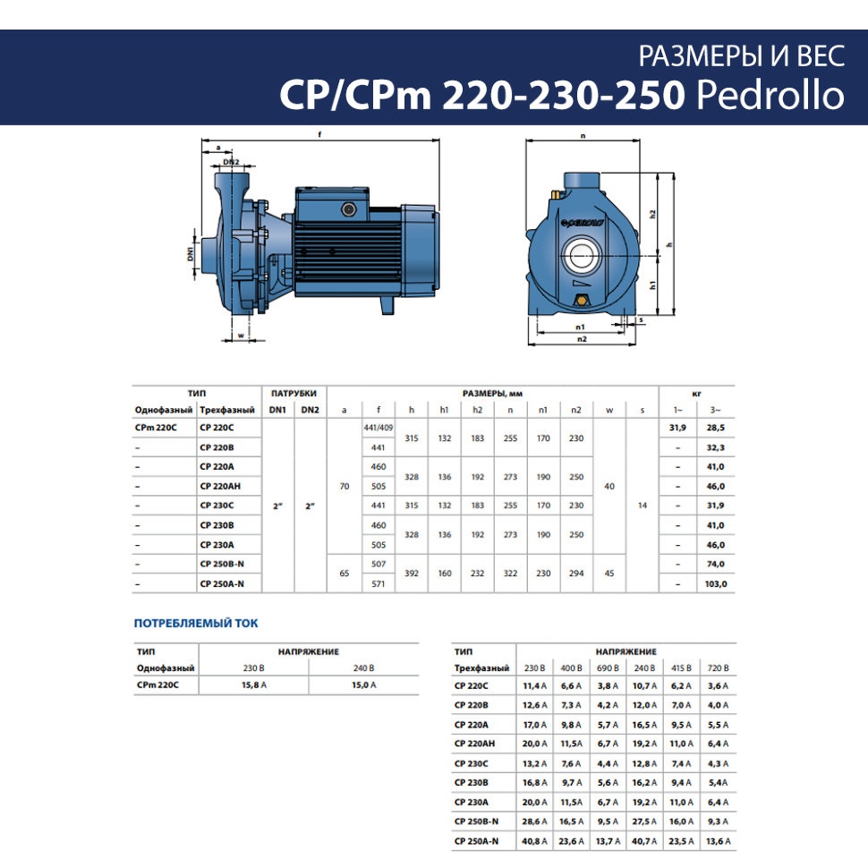 Центробежный трехфазный электронасос Pedrollo CP 230A T - рекомендуются для перекачивания чистой, без абразивных частиц, воды и жидкостей, химически неагрессивных по отношению к конструкционным материалам насоса. Благодаря своей надёжности и простоте в эксплуатации, насосы находят широкое в коммунальном секторе, в сельском хозяйстве и в промышленности, а именно в системах водоснабжения, охлаждения, кондиционирования, орошения и т.д. Установка насоса должна производиться в закрытых помещениях или в местах, защищенных от непогоды.