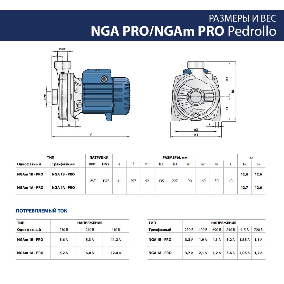 Центробежный однофазный насос из нержавеющей стали с рабочим колесом открытого типа Pedrollo NGA-PROm1A M - Рекомендуются для перекачивания воды и жидкостей, химически неагрессивных по отношению к конструкционным материалам насоса. Конструкция открытого рабочего колеса позволяет перекачивать жидкости с относительно высоким уровнем примесей без риска его засорения. Все элементы насоса, контактирующие с перекачиваемой жидкостью, изготовлены из нержавеющей стали AISI 316. Благодаря этой характеристике насосы серии NGA-PRO применяются в частности в оборудовании для мойки овощей, фруктов, рыбы, моллюсков, в промышленных моечных установках и в системах циркуляции охлаждающих жидкостей. Установка насоса должна производиться в закрытых помещениях или в местах, защищенных от непогоды.