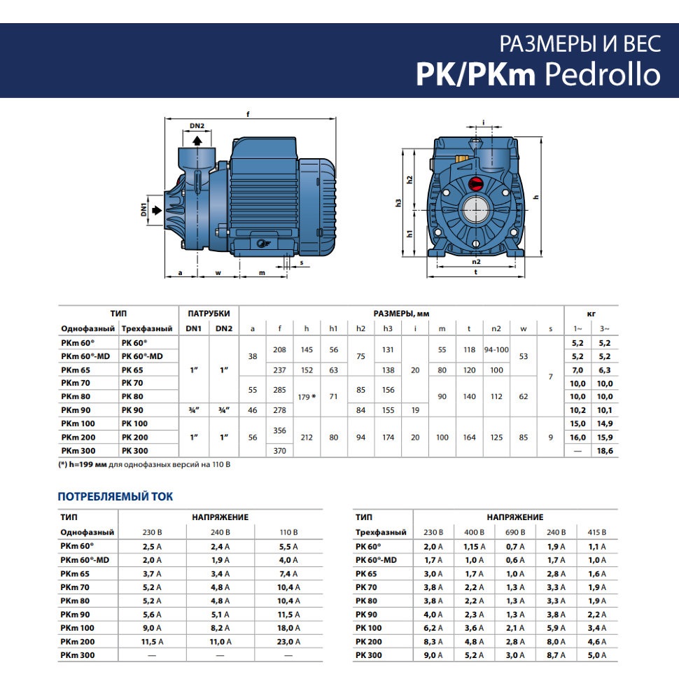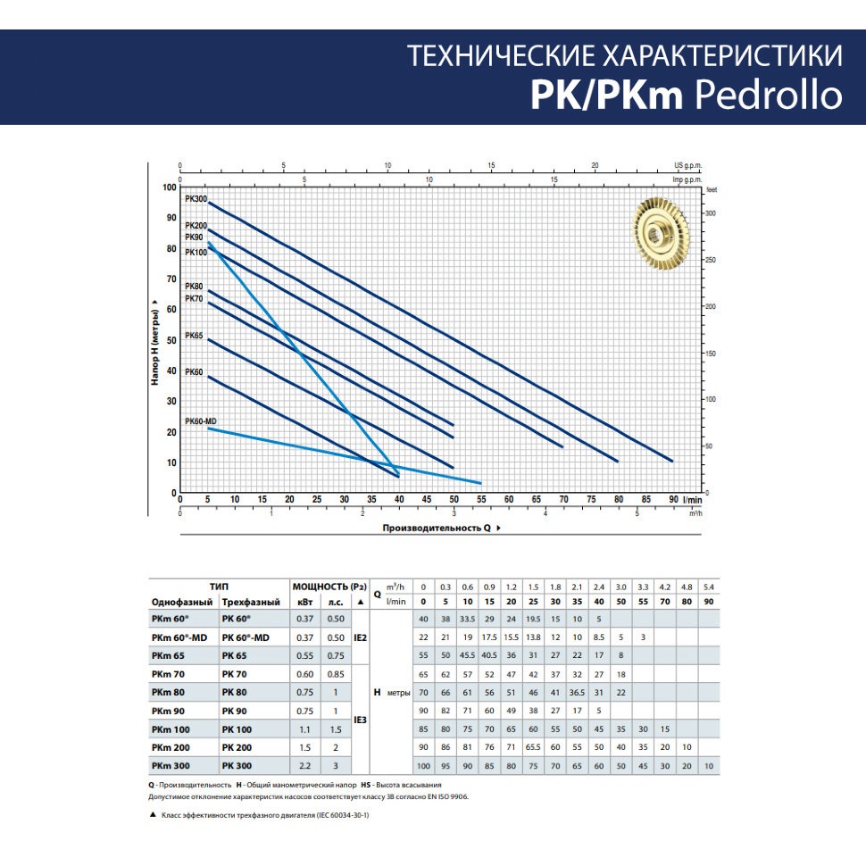 Центробежные вихревые насосы Pedrollo PKm 80 0,75 kW - Электронасосы серии PK с рабочим колесом вихревого типа рекомендуются для перекачки чистой воды без абразивных частиц и химически неагрессивных жидкостей к материалам, из которых сделан насос. Благодаря их надежности, простоте в эксплуатации и экономичности, эти насосы нашли свое применение, прежде всего в быту, в частности, для подачи воды совместно с небольшими резервуарами автоклавами для орошения огородов и садов. Установка насоса должна производиться в закрытых помещениях или же в местах, защищенных от атмосферного воздействия.