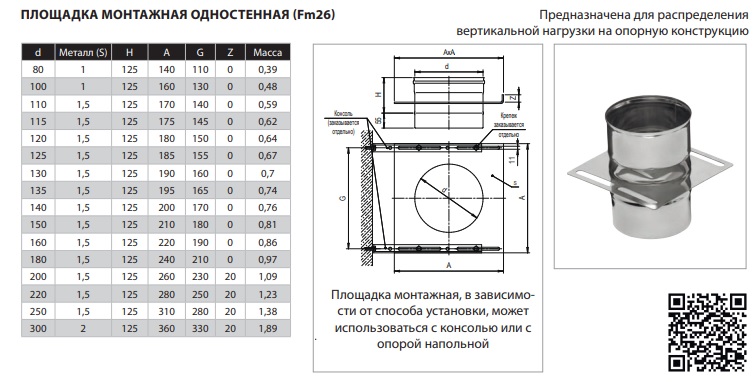 Площадка монтажная FERRUM Ø 150 (430/0,8 mm) Одностенные дымоходы - это самое простое решение при сборке дымового канала, не требующее больших расходов. Дымоходная конструкция имеет стандартный набор различных элементов, при помощи которых можно собрать дымоотводящий канал практически любой сложности. Все элементы стыкуются между собой по раструбной системе соединения. Они могут использоваться при монтаже дымоходов в кирпичных каналах уже вошедших в эксплуатацию жилых зданий либо при монтаже каналов вентиляции. Одностенные дымоходы следует размещать только внутри отапливаемых помещений, при наружном размещении дымоходы следует теплоизолировать.