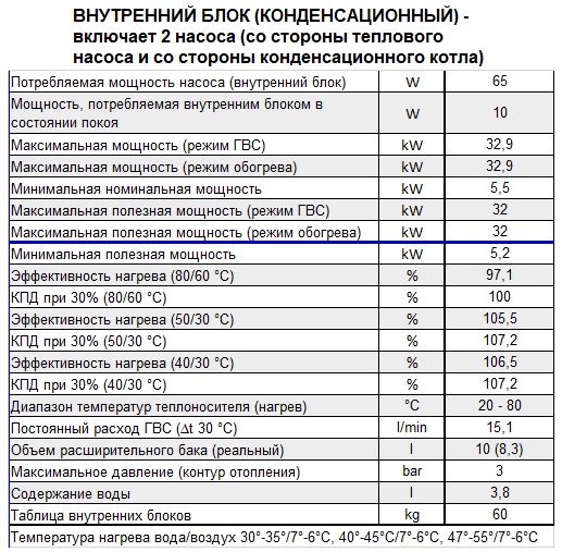 Реверсивный инверторный гибридный тепловой насос воздух-вода, состоящий из наружного конденсаторного блока и внутреннего гидроконденсаторного блока.