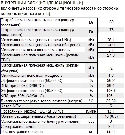 Сплит-система монофазного гибридного теплового насоса типа "воздух-вода" с инверторным приводом, состоящая из наружного теплонасосного блока и внутреннего гидронно-конденсаторного блока