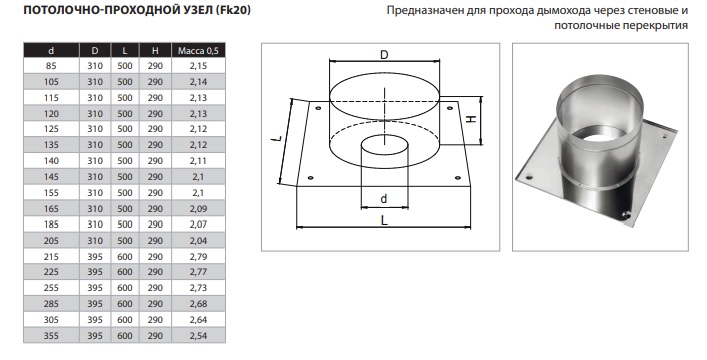 Потолочно проходной узел FERRUM Ø 200 (430/0,5 mm) Одностенные дымоходы - это самое простое решение при сборке дымового канала, не требующее больших расходов. Дымоходная конструкция имеет стандартный набор различных элементов, при помощи которых можно собрать дымоотводящий канал практически любой сложности. Все элементы стыкуются между собой по раструбной системе соединения. Они могут использоваться при монтаже дымоходов в кирпичных каналах уже вошедших в эксплуатацию жилых зданий либо при монтаже каналов вентиляции. Одностенные дымоходы следует размещать только внутри отапливаемых помещений, при наружном размещении дымоходы следует теплоизолировать.