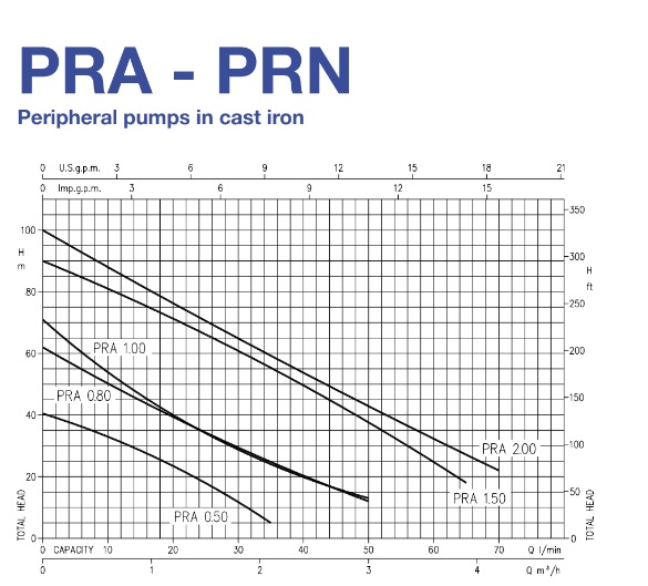 Центробежные вихревые насосы EBARA серии PRA / PRN из чугуна. Широко используются для бытового назначения, для подпитки котлов, в составе насосных установок поддержания давления.