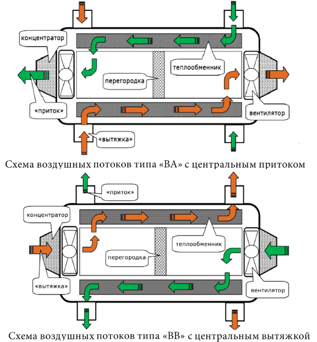 • Внутри рабочего модуля размещен медный теплообменник, благодаря которому обеспечивается теплообмен (рекуперация).
