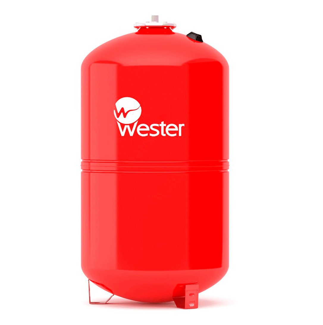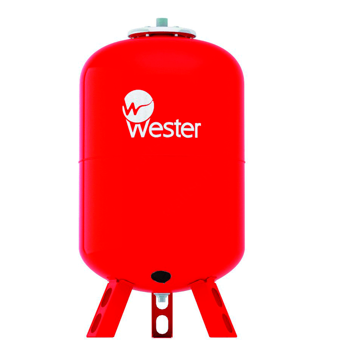 Расширительный бак для отопления Wester WRV 100 L. Для изготовления расширительного бака использована высококачественная сталь. Оборудование предназначено для отопительных систем, теплоносителем в которых является вода, которая содержит менее 50% гликоля.