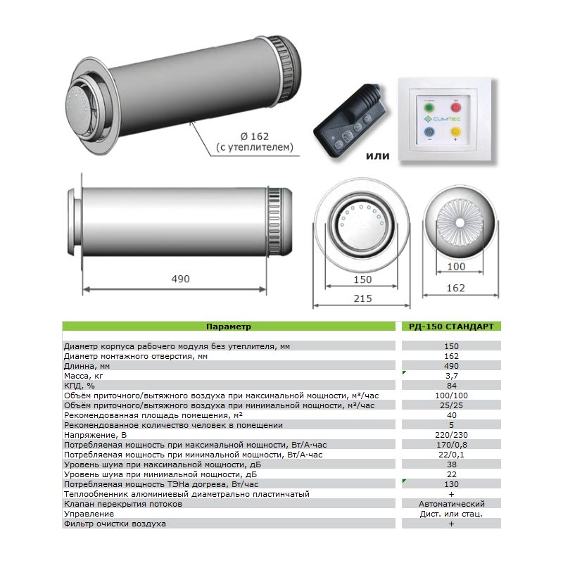 Децентрализованная система вентиляции с рекуператором ТМ «CLIMTEC» - это приточно-вытяжная система вентиляции, в которой приток и отток происходят одновременно, и без смешивания потоков воздуха.