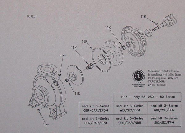 Оригинальный ремкомплект торцевых уплотнений (комплект сальников) EBARA 3M, предназначен для ремонта насосного оборудования Ebara.