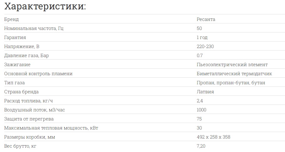Тепловая газовая пушка RESANTA ТГП-30000 / 30 kw - отопительный прибор для обогрева помещений. Как правило, применяется для вентиляции и обогрева производственных, строительных и других помещений.