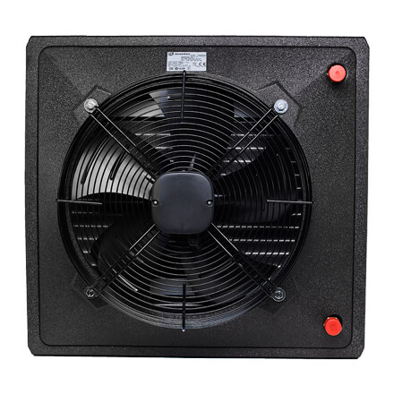 Вентилятор осевой: защитная сетка изготовлена из стальной оцинкованой проволоки, лопасти металлические. Степень защиты двигателя IP54. Номинальный ток 0,82А — 1,2А. Оборудование однофазное. В зависимости от размера, обогреватели имеют вентиляторы размером 400-450 мм.