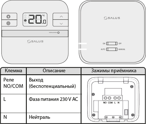 Беспроводной комнатный термостат Salus RT310RF - используется для включения системы отопления. Его работа заключается в контроле температуры в помещении по воздушному датчику.