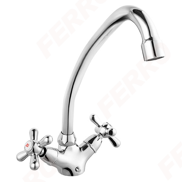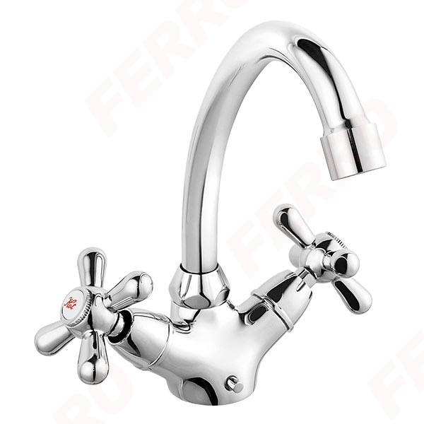 Смеситель FERRO RETRO XR4 – это двухвентильный смеситель с длинным гусаком, предназначенный для кухни. Данный смеситель устанавливается на раковину.