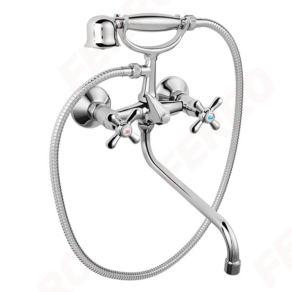 Смеситель FERRO RETRO XR11 – это двухвентильный смеситель с коротким гусаком, предназначенный для ванной комнаты. Данный смеситель устанавливается на ванну и служит для наполнения ванны или используется для душа.