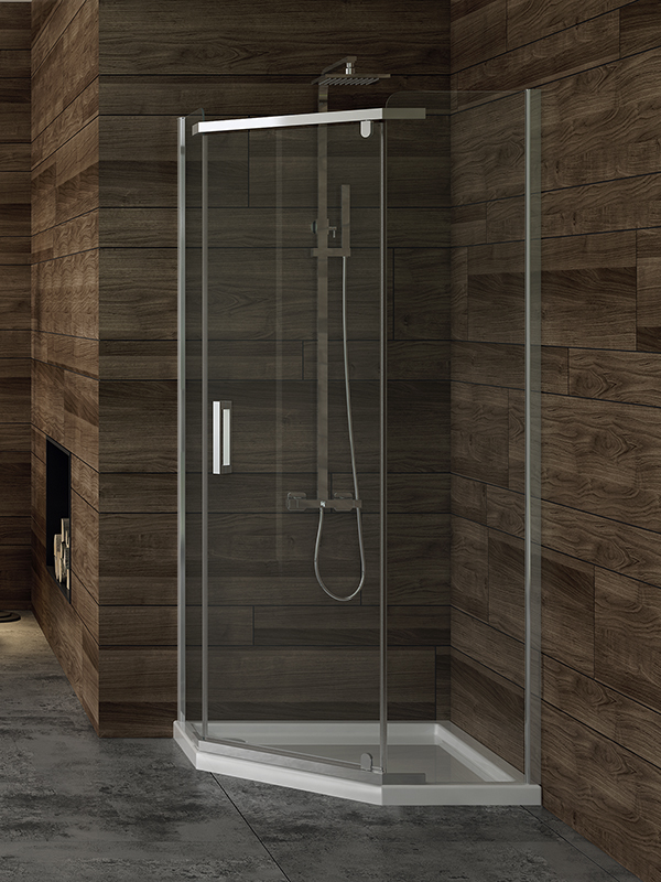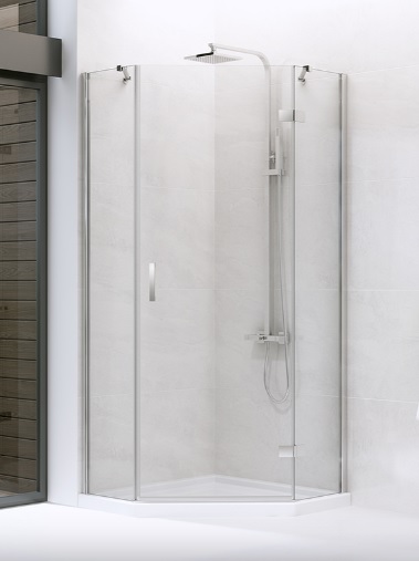 Душевая кабина пятиугольная DARIOS 900*900 мм. Помимо прочности и долговечности, толщина стекла является одним из важных факторов, определяющих качество кабины или душевой стенки. Более толстое стекло обеспечивает лучшую устойчивость кабины и более плавное движение дверей в петлях или на роликах в случае кабины с раздвижными дверями.