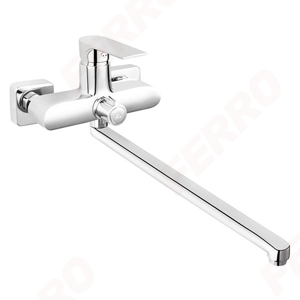 Смеситель FERRO SQUARE BAQ5A – это однорычажный смеситель с длинным гусаком, предназначенный для ванной комнаты. Данный смеситель устанавливается на ванну и служит для наполнения ванны или используется для душа, так же данную модель можно использовать для двух назначений таких как ванна и раковина, если они стоят рядом.