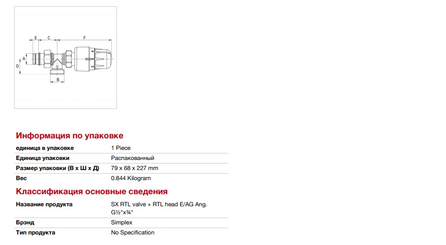 Simplex MEIBES RTL - Ventil 1/2-3/4  Угловое