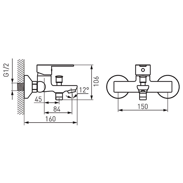 • Эксцентрический подвод G 1/2 межцентровое расстояние 150 ± 20 мм