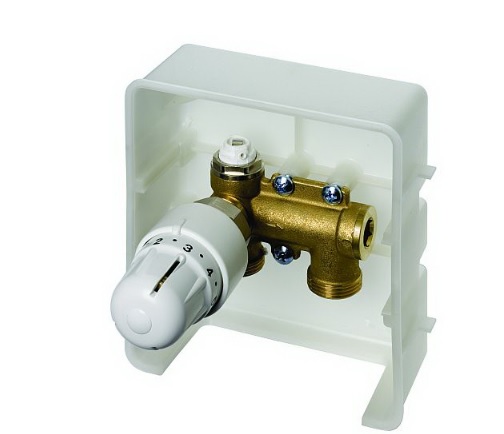 Задание температуры происходит на термостатической головке в диапазоне от 10 до 50 °С. Для удобства термостатичекая головка выглядывает из-за корпуса комбибокса.