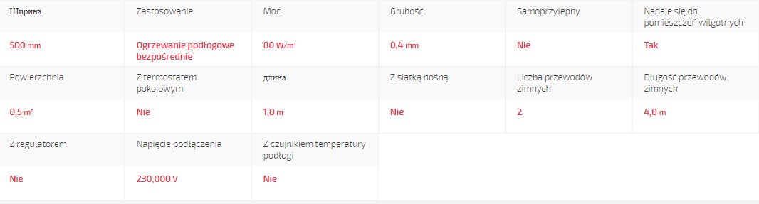 Тепловой коврик ZAMEL FGP-80 80 W / 0,5 m2 Электрические пленки нагревательные для теплого пола рекомендуется для применения под полы из ламинированных панелей. Ultracienkie источник тепла и отлично подходит под такого рода поверхностей в квартирах, офисах и т. д. Излучаемый из пленки тепло в виде инфракрасного излучения эффективно нагревает помещение.
