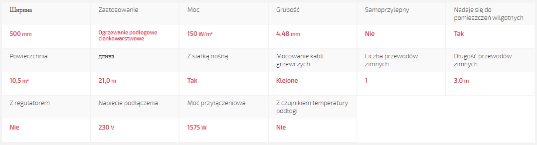 Нагревательный мат ZAMEL MOJ-105 1600 W / 10,5 m2 для тонких бетонных стяжек . Используется для керамической плитки, каменных поверхностей и т. Д. H03VV-F 3G 0,75 мм2. Нагрев с фиксированной двухпроводной фиксированной линией. В комплект входит защитный кожух для кабеля зонда и углубленный электрический выход диаметер 60.