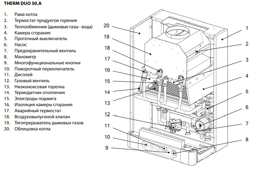 Therm DUO 50 это дымоходный настенный газовый котел мощностью 50 кВт, с возможностью подключения в каскад, для отопления дома общей площадью до 500 м2.
