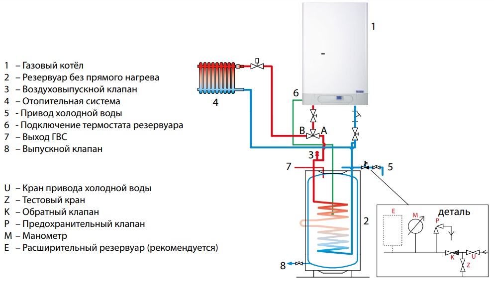 - вариант, предназначенный для отопления и нагрева ГВС в резервуаре без прямого нагрева*