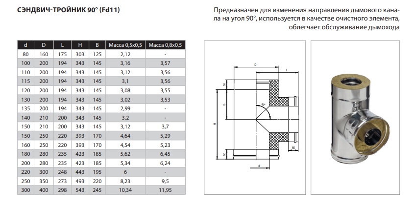 Утепленный дымоходный Тройник FERRUM Ø 150-210 90° (430/0,8 mm) Двустенный дымоход или сэндвич представляет собой конструкцию, состоящую из двух труб разного диаметра (внешней и внутренней). Пространство между этими трубами заполнено теплоизоляционным материалом негорючего свойства. Наполнитель состоит из базальтового волокна высокого качества. Такая конструкция способствует быстрому нагреву внутренней трубы. За короткий промежуток времени после старта температура в дымоходе поднимается выше «точки росы», и это помогает избежать образование конденсата.