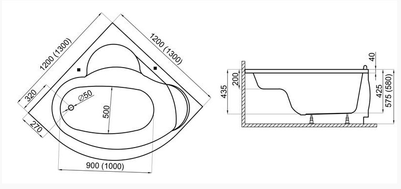 Угловая Акриловая ванна STANDARD1 1300*1300 мм (плюс крепления). Симметричная акриловая угловая ванна STANDARD - это ванна для людей, которые ценят комфорт и симметричные решения. Угловая ванна быстро нагревается, длительное время поддерживает температуру воды и делает купание в этой симметричной ванне приятным, расслабляющим.