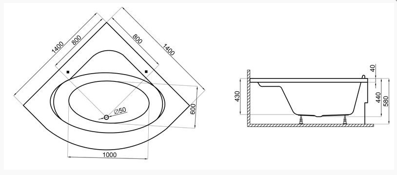 Угловая Акриловая ванна STANDARD2 1400*1400 мм (плюс крепления) . Симметричная акриловая угловая ванна STANDARD - это ванна для людей, которые ценят комфорт и симметричные решения. Угловая ванна быстро нагревается, длительное время поддерживает температуру воды и делает купание в этой симметричной ванне приятным, расслабляющим.