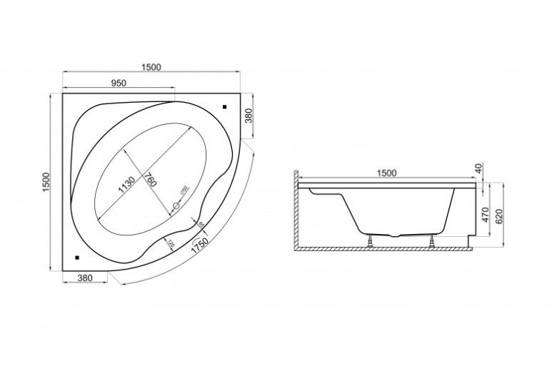 Угловая Акриловая ванна STANDARD2 1500*1500 мм (плюс крепления) . Симметричная акриловая угловая ванна STANDARD - это ванна для людей, которые ценят комфорт и симметричные решения. Угловая ванна быстро нагревается, длительное время поддерживает температуру воды и делает купание в этой симметричной ванне приятным, расслабляющим.
